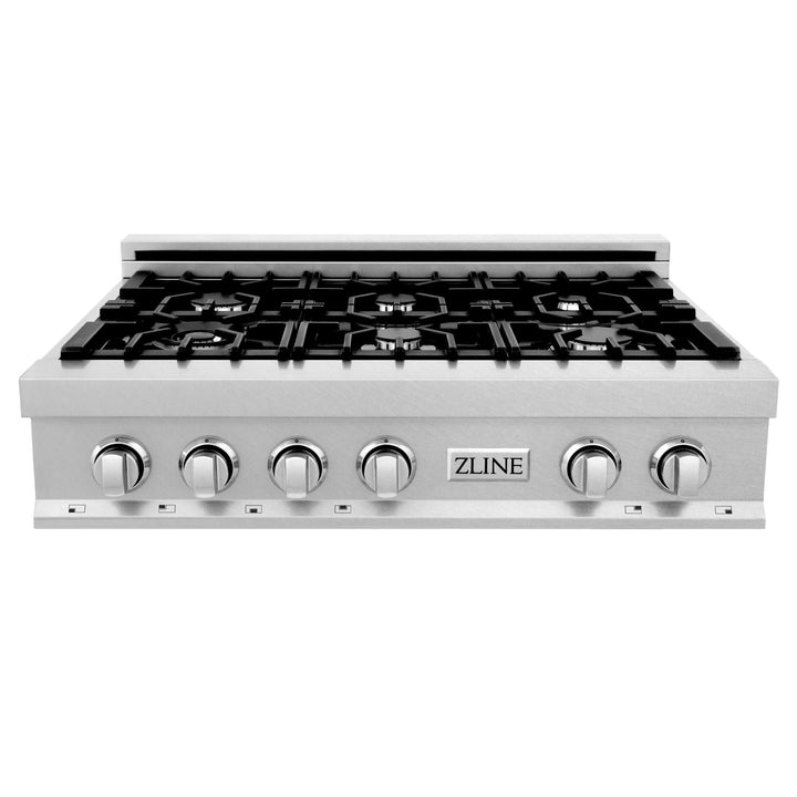 Ignite your culinary experience with the ZLINE 36 in. Porcelain Rangetop in DuraSnow Stainless Steel with 6 Gas Burners (RTS-36). The ZLINE DuraSnow is a revolutionary finish that resembles the classic look of stainless steel, but provides one-of-a-kind durable features such as its fingerprint resistant finish and the ability to effortlessly diminish scratches created from everyday wear and tear. Achieve optimal results with cooking power from 4,200 up to 18,000 BTUs provided with Italian-crafted sealed burners. Assembled with the highest quality materials on the market, this range top comes equipped with a durable, scratch-resistant porcelain cooktop and ZLINE’s premium cast iron grates. Offering an elevated luxury look and professional cooking features, this 6 burner rangetop is designed to impress every guest. ZLINE stands by the longevity and durability of their professional range tops, while ensuring peace of mind with a worry-free warranty. The ZLINE Rangetop ships next business day when in stock.