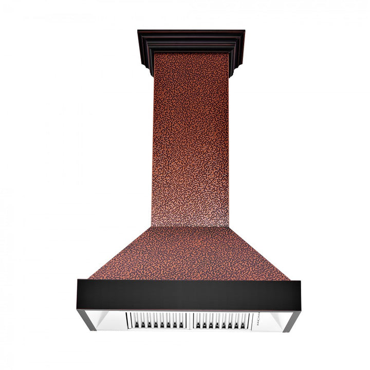 ZLINE Designer Series Wall Mount Range Hood (655-EBXXX-30) has a modern design and built-to-last quality that would make it a great addition to any home or kitchen remodel. The professional Embossed Copper hood with Oil Rubbed Bronze bands are made from 304 grade stainless steel, featuring ZLINE’s proprietary hand-rubbed 7-layer copper finish. This hood’s high-performance 4-speed motor will provide all the power you need to quietly and efficiently ventilate your kitchen while cooking. Modern features, including built-in lighting and dishwasher-safe stainless steel baffle filters for easy clean-up, will make using this hood a simple, enjoyable experience for years to come. ZLINE Hoods are ETL Listed and have one of the easiest installations in the industry. Includes a 36 in. chimney with elegant crown molding for ceilings up to 9.5 ft. (must be custom cut to appropriate height). Charcoal Filters and Vented Crown Molding (not included) are available for Ductless Option. ZLINE stands by all products with its Manufacturer Parts Warranty.